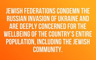 Jewish Federations condemn the Russian invasion of Ukraine and are deeply concerned for the wellbeing of the country’s entire population, including the Jewish community.