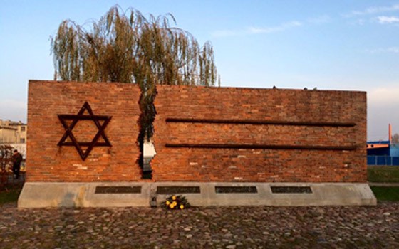 As we continued our walk through the neighborhood, we came across a large memorial dedicated to the Jews of Czestochowa. The brick monument resembled a ghetto wall and stood in the exact spot where daily round ups and deportations took place. Accompanying the wall was a plaque which read “September 22-October 7, 1942, German Nazi occupants deported from this place about 40,000 Jews of Czestochowa and environs to their death in Treblinka gas chambers. Their memory be honored!”
